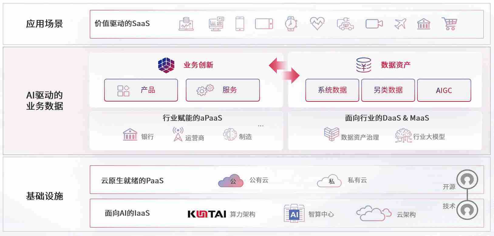 数字时代,,围绕企业数字化转型的关键要素,,,,bob波币钱包数码开创性的提出数云融合战略和技术体系框架,,,,着力在云原生、、、、数字原生、、AI原生和信创产业上架构产品和服务能力,,,,为处在不同数字化转型阶段的快消零售、、汽车、、金融、、、、医疗、、、政企、、教育、、、运营商等行业客户提供泛在的敏捷IT能力和融合的数据驱动能力,,,构建跨界融合创新的数字业务场景和新业务模式,,助力企业级客户建立面向未来的核心能力和竞争优势,,,全面推动社会的数字化、、智能化转型升级。。