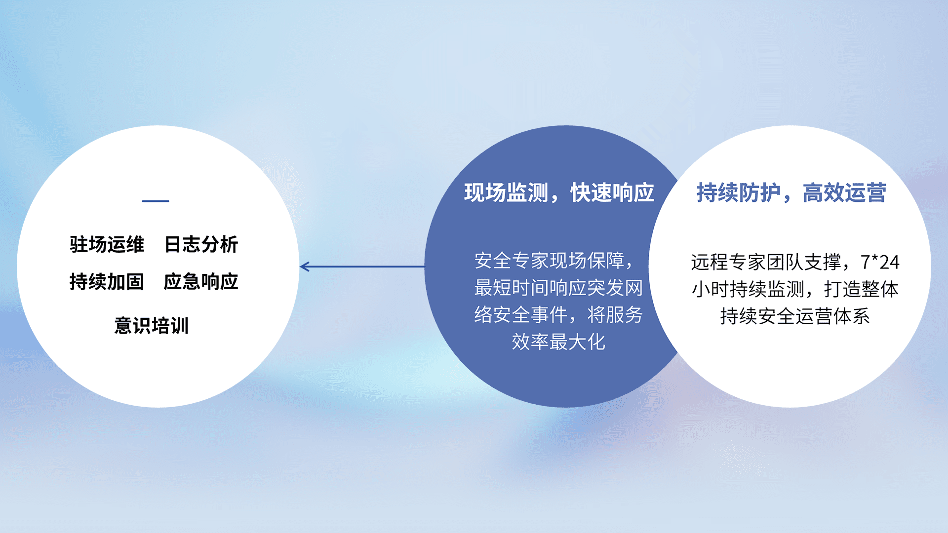 针对客户行业特性,,提供专属的一站式安全管理服务,,帮助客户全面感知网络空间威胁,,通过安全专家的线上、、、、线下防护支持,,实现风险闭环,,将安全保障常态化,,为客户打造常态化安全运维运营服务。。